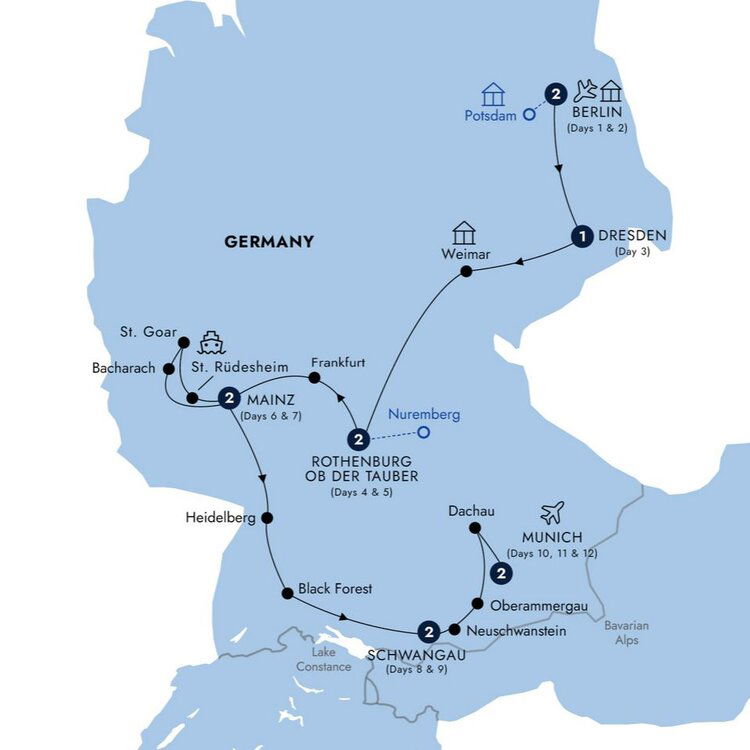 Join a Local Expert in Weimar to explore the city of literary luminaries Goethe and Schiller. Venture to Rothenburg ob der Tauber, the best-preserved town on the Romantic Road. Plunge back into the 16th century during your orientation with your Travel Director as you walk through narrow cobbled streets lined with high-gabled houses to the market square, dominated by its Renaissance town hall. For your Dine-Around evening, choose from a hand-picked selection of restaurants within the walls of the Old Town. (B/D) Stay: Altes Brauhaus