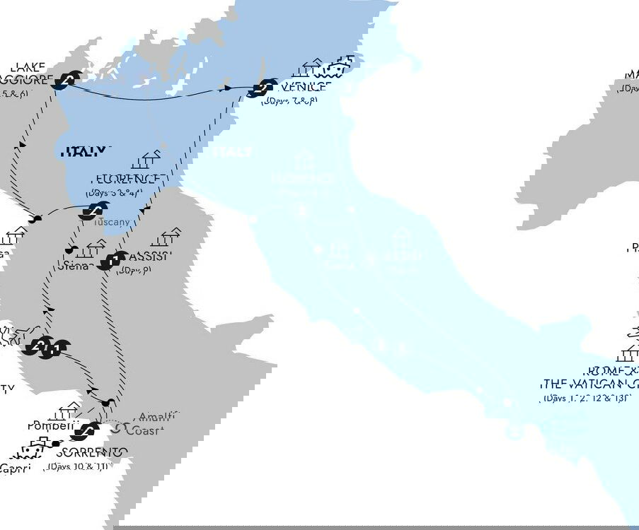 Bid farewell to the glories of Italy, savouring the memories of its enchanting cities, historic landmarks and stunning landscapes. Italy's unique allure will linger in your heart long after you leave. (B)