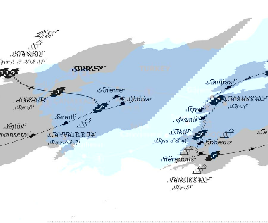 Later, join your group as you head from Eceabat across the sea to Çanakkale before arriving in the historic city of Troy, the focal point of the Trojan War and the backdrop to one of history's most famous love stories, that of Paris and Helen of Troy, the face that launched 1000 ships. A replica of the mighty Trojan horse, which helped the Greeks capture the city in 1200 B.C., can be seen beside the city's walls. (B/D) Stay: Kolin, Çanakkale