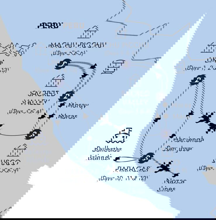 Embark on the next leg of your journey with a flight from Cusco to Lima. Arriving in Peru's capital city, head out on a leisurely coastal drive to town of Paracas. This beach town where the desert meets the Pacific Ocean is the ideal jumping off point for the Ballestas Islands as well as Paracas National Reserve. Indulge your curiosity learning how this protected desert peninsula is known for its abundant wildlife and as an important archaeological area once home to a prehistoric civilization from 800 BCE and 200 BCE. (B) Stay: Paracas, a Luxury Collection Resort