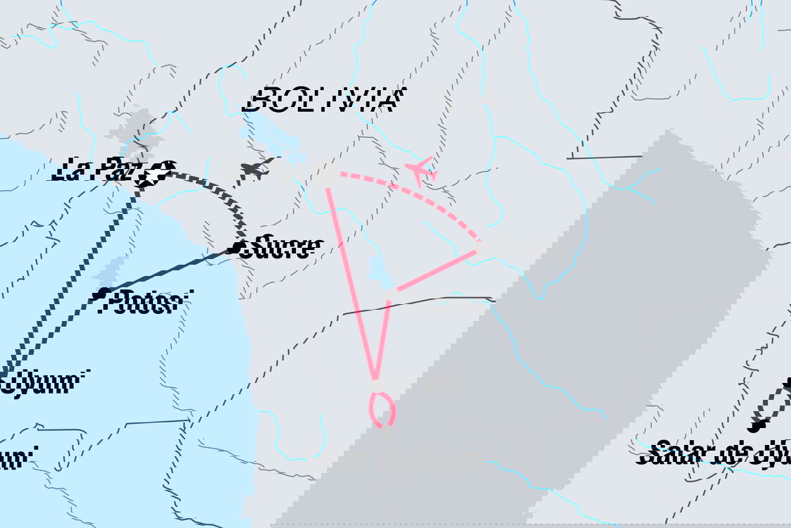 Leave La Paz this morning and travel by private vehicle to Uyuni – the gateway to Bolivia’s acclaimed salt flats. You’ll arrive in the late afternoon, so be sure to have a podcast and snacks ready. Uyuni feels a bit like you've reached the end of the road, which is true in a way. This remote town sits on the edge of the high altiplano – a wilderness extending hundreds of kilometres towards the border with Argentina and Chile. After checking into your hotel, the evening is yours to relax. Although basic, the rooms are clean and comfortable – and it may be the last time you’ll have a hot shower for a few days! (B)