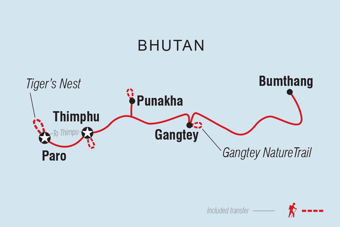 Kuzu zangpo la! Welcome to Bhutan, the ‘Land of the Thunder Dragon’. When you arrive at Paro International Airport, you’ll be met by your female local leader and transferred to your hotel in Thimphu – Bhutan’s capital city which sits at around 2300 m (7550 ft) above sea level. Catch your first glimpses of the Thimphu Valley during the drive! Your adventure begins with a welcome meeting at 6 pm.
