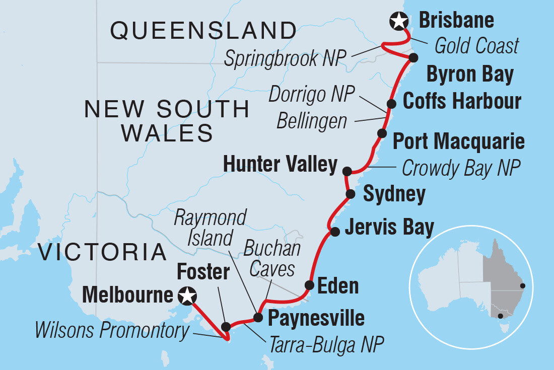 After a group breakfast this morning, your trip comes to an end in Brisbane. If you’d like to stay longer, just speak to your booking agent. (B)