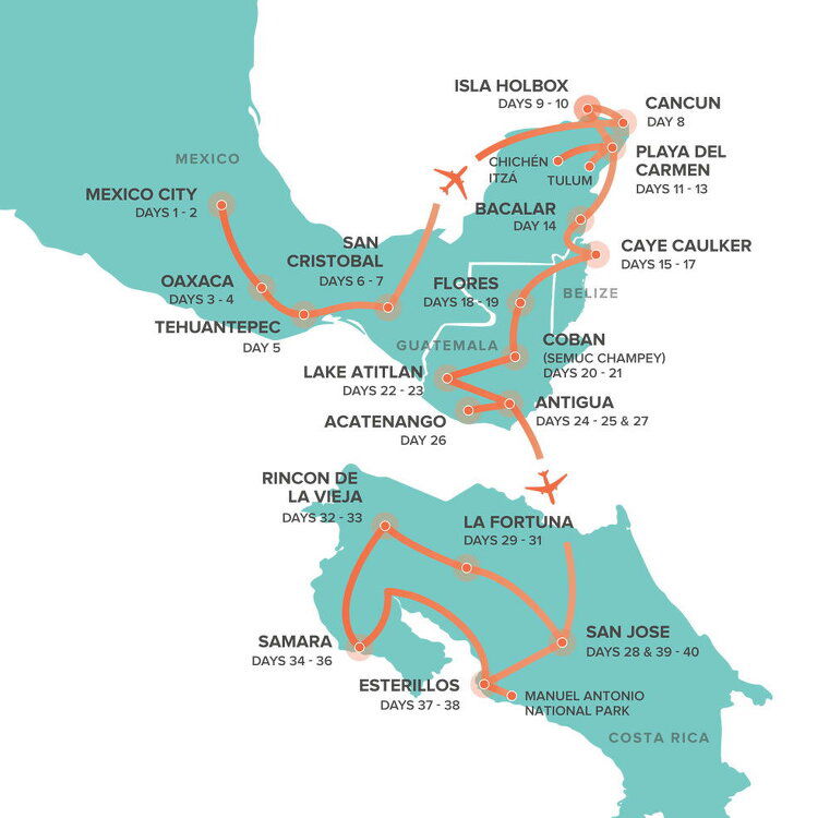 Time to say adios as our epic 40 day Central America dream comes to an end. Swap those Instagram handles and start planning the reunion, it's not goodbye, just see you later! You can either check out and journey home, stay on longer in San José or continue your travels in Central America. If you need any assistance planning onward travel, we're here to help every step of the way.