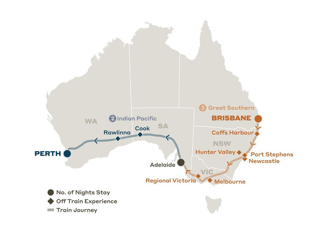 This afternoon make your way to Adelaide Parklands Terminal. Here you will start your journey with a delicious welcome dinner before joining the Indian Pacific, where you can settle into your cabin or mingle with fellow travellers in the Outback Explorer Lounge. Stay: Indian Pacific (2 Nights) (B/D)