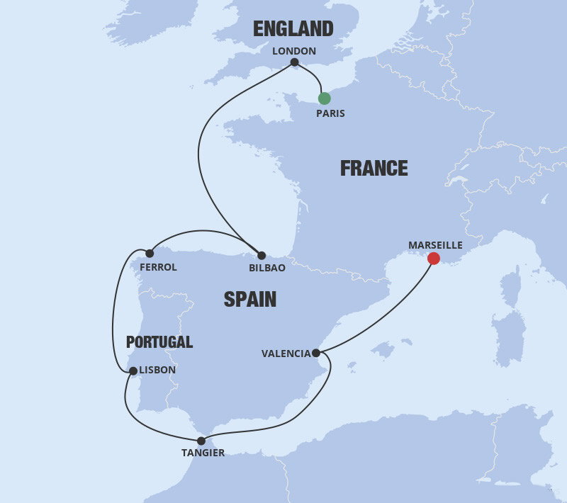 Surrounded by green mountains and lined by the beautiful blue water of the Bay of Biscay, Bilbao is magnificent mix of historic and spectacular modern architecture. Famed for its Guggenheim Museum, clad in glimmering titanium, this enormous structure is a work of art itself. Ships will dock in Getxo, which is a 20 minute drive from Bilbao.