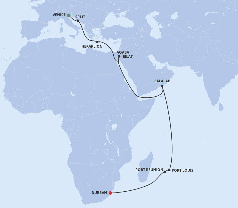Enjoy the breathtaking illusion of sailing through oceans of desert sand as you cruise the Suez Canal, the engineering marvel that connects the Mediterranean and Red Seas.