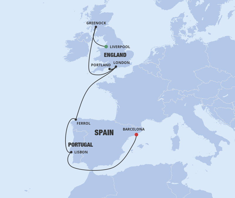 Your cruise finishes today in Barcelona, a captivating city on Spain's northeastern coast. If you're extending your stay in the city, start with a visit to La Sagrada Família, Antoni Gaudí's masterpiece, then wander through the narrow, historic streets of the Gothic Quarter.