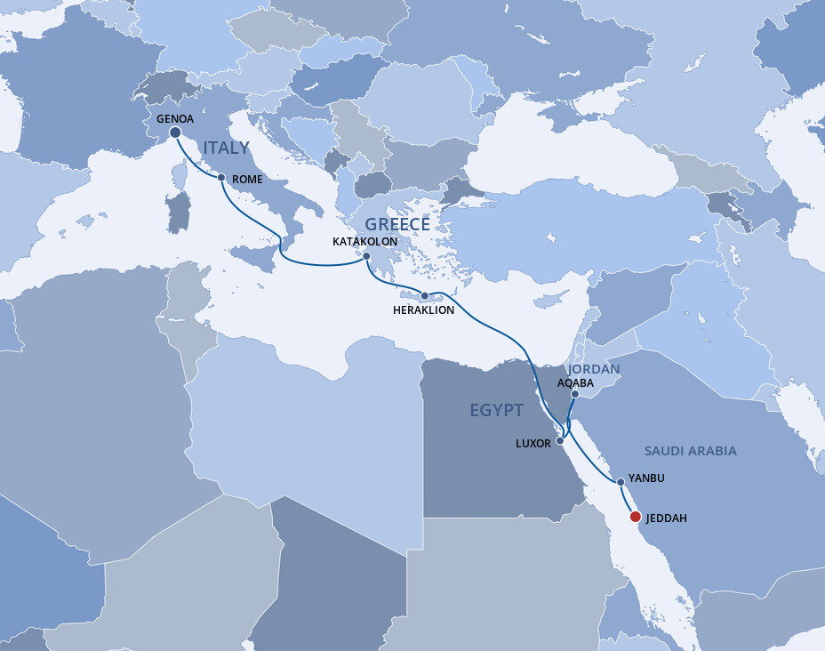 Enjoy the breathtaking illusion of sailing through oceans of desert sand as you cruise the Suez Canal, the engineering marvel that connects the Mediterranean and Red Seas.