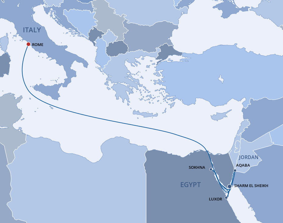 Enjoy the breathtaking illusion of sailing through oceans of desert sand as you cruise the Suez Canal, the engineering marvel that connects the Mediterranean and Red Seas.
