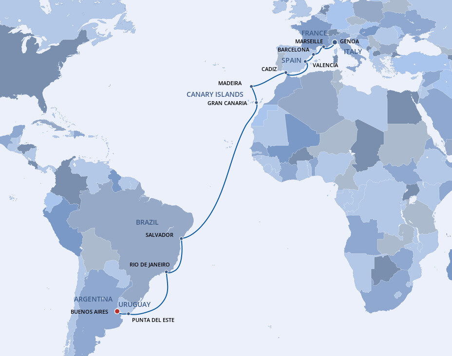 Visitors can choose to visit Caminito, the colourful street museum, shop at San Telmo Market, stroll through Recoleta Cemetery or cruise the Tigre River delta. Ships will dock at the Terminal de Pasajeros Benito Quinquela Martin which is a 30 minute drive from the airport and a 10 minute drive to the city centre.