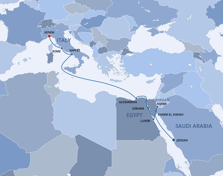Enjoy the breathtaking illusion of sailing through oceans of desert sand as you cruise the Suez Canal, the engineering marvel that connects the Mediterranean and Red Seas.