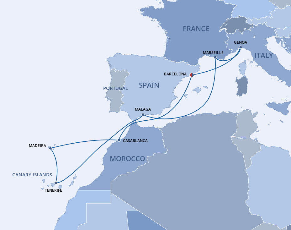 Your cruise finishes today in Barcelona, a captivating city on Spain's northeastern coast. If you're extending your stay in the city, start with a visit to La Sagrada Família, Antoni Gaudí's masterpiece, then wander through the narrow, historic streets of the Gothic Quarter.