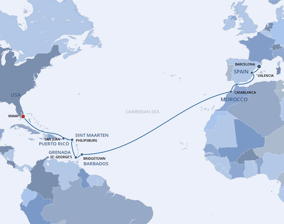 Bridgetown, the captivating capital of Barbados, combines faded colonial history, captivating tradition, and vivid white beaches. Stately colonial buildings intermingle with colourful wooden homes, open-air markets and catch-of-the-day cafés. Ships will dock at this port.