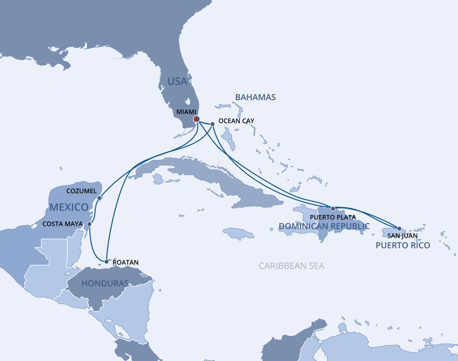 This multicultural city where the sun rules supreme is more than just a cruise port. Visitors from all over the world enjoy Miami’s famous Art Deco buildings, family-friendly zoos and romantic palm tree-lined streets filled with fantastic restaurants. Don’t forget about the white sandy beaches and year-round warm weather, perfect for relaxing before or after your Caribbean cruise from Miami.