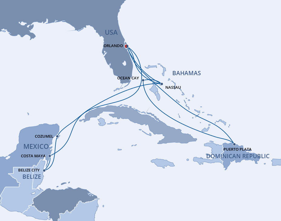 As the home of Kennedy Space Centre, Port Canaveral is the launching point for all-out adventure in Central Florida. Its beaches offer a mix of family-friendly shores and secluded swathes of sand. And with Orlando’s theme park sprawl only an hour away, you can easily mingle with your favourite characters. A truly unique place for cruise departures and arrivals, it gives visitors the perfect opportunity to extend their holiday beyond the cruise. Ships will dock at the cruise terminal.