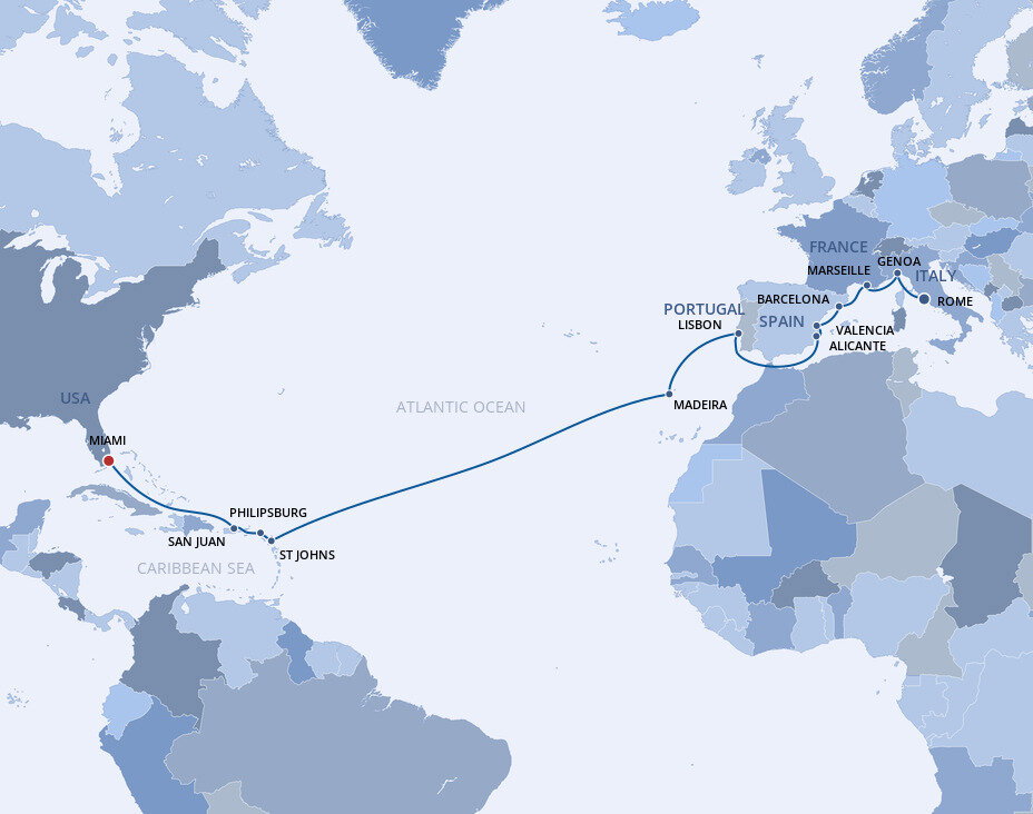 This multicultural city where the sun rules supreme is more than just a cruise port. Palm-lined causeways stretch across luminous Biscayne Bay as Miami rises in a gleam of glass towers, Art Deco curves, and tropical colour. Along Ocean Drive in South Beach, pastel facades from the 1930s glow beneath the Florida sun, while nearby Little Havana hums with domino parks, cigar shops, and the aroma of Cuban coffee. Beyond the shoreline, calm waters, yacht marinas, and breezy promenades frame a city shaped by Caribbean rhythms and sunlit coastal glamour.
