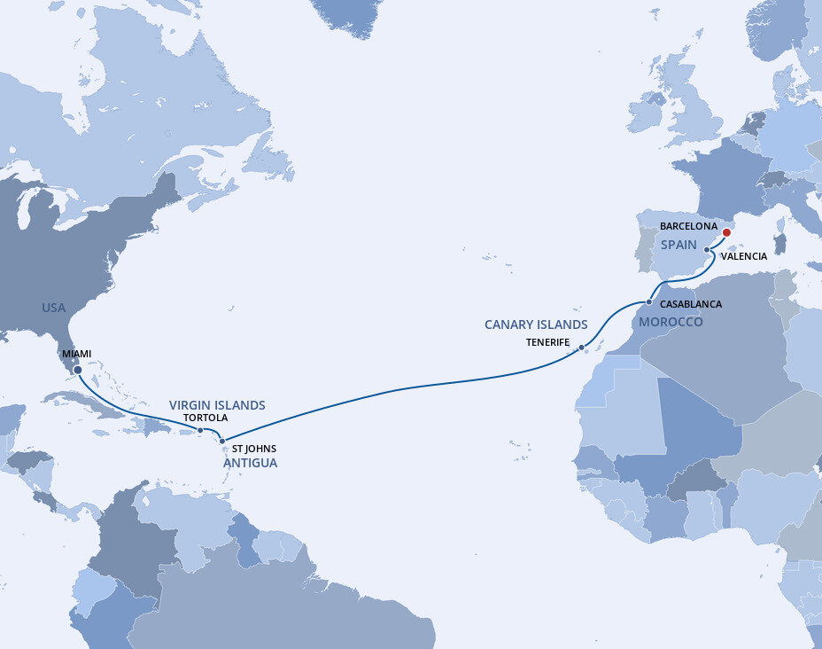 Your cruise finishes today in Barcelona, a captivating city on Spain's northeastern coast. If you're extending your stay in the city, start with a visit to La Sagrada Família, Antoni Gaudí's masterpiece, then wander through the narrow, historic streets of the Gothic Quarter.