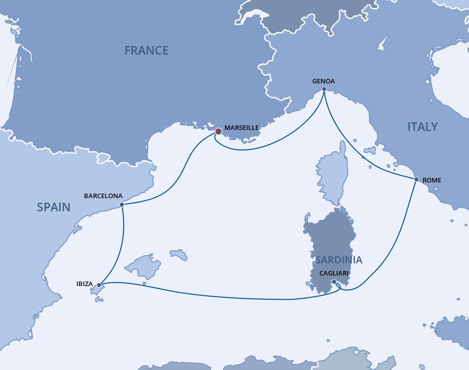 Cagliari, the capital of the island of Sardinia, is situated high upon hills that offer a panoramic view of the Golfo degli Angeli, the Gulf of Angels. Combining Byzantine churches with crumbling Roman ruins and Pisan towers, it’s an elegant, beguiling place to explore. Ships will dock at the Cagliari cruise port in Porto Cervo.