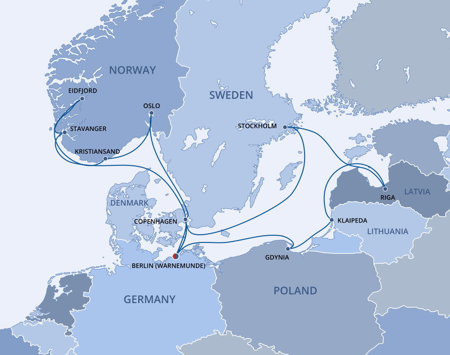 Warnemünde offers access to both the historic city of Rostock, just 13 kilometers (8 miles) away, and the vibrant capital, Berlin, approximately 240 kilometers (150 miles) away. Rostock is reachable within 20 minutes by train, while Berlin requires a longer travel time, about 3 hours by train or coach. Explore Rostock's medieval architecture and Hanseatic history or if you're looking to explore Berlin, plan for a full day experience.