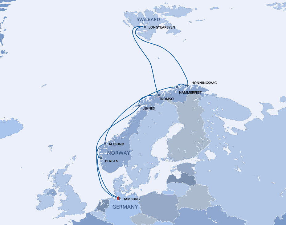 The world’s northernmost village, Honningsvag is the gateway to the North Cape. It is a completely modern fishing harbour set in a land of forests, fjord waters, and crashing waterfalls. The cliffs of the North Cape are perched 1,000 feet above the Arctic Ocean and provides a lookout over a limitless panorama.