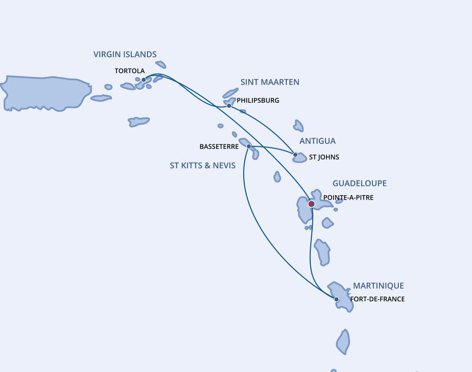 The port town for the island of St. Kitts, Basseterre has centuries of history to explore in impressive estates and photo-worthy monuments. With more than a quarter of the island set aside as a national park and a rainforest that is growing rather than shrinking, St. Kitts is a stunning tropical island escape. Ships will dock at this port.