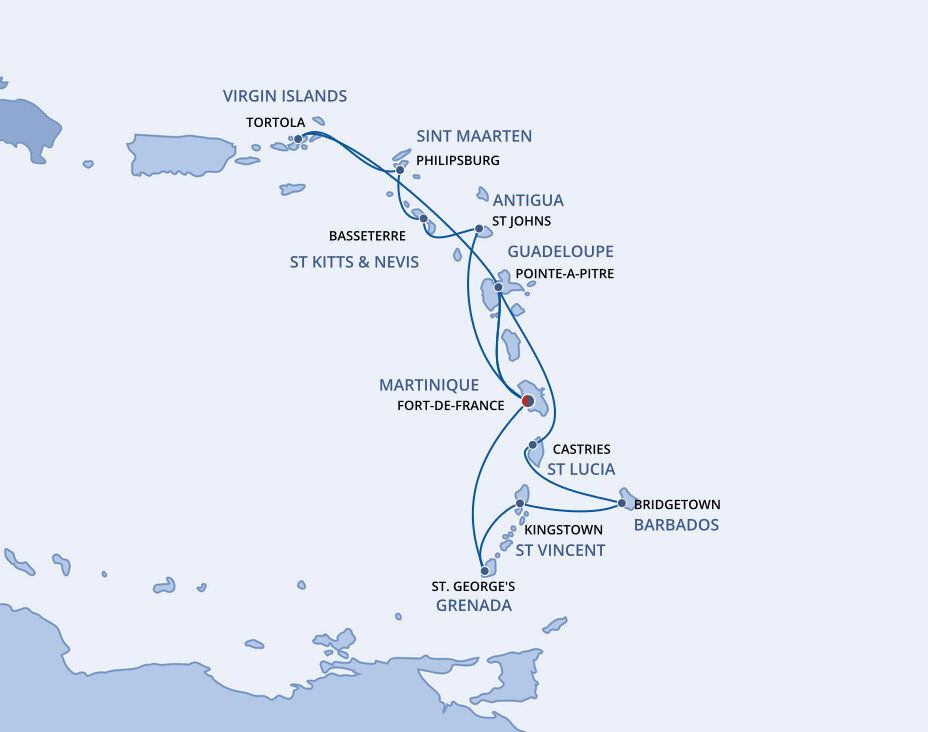 Fort-de-France, located on Martinique is the largest city in the French West Indies and it has personality to match. Life here is vibrant and fast-paced, and the culture is as colourful as the brightly painted shops that line the city’s cobblestone streets. Ships will dock at the port.