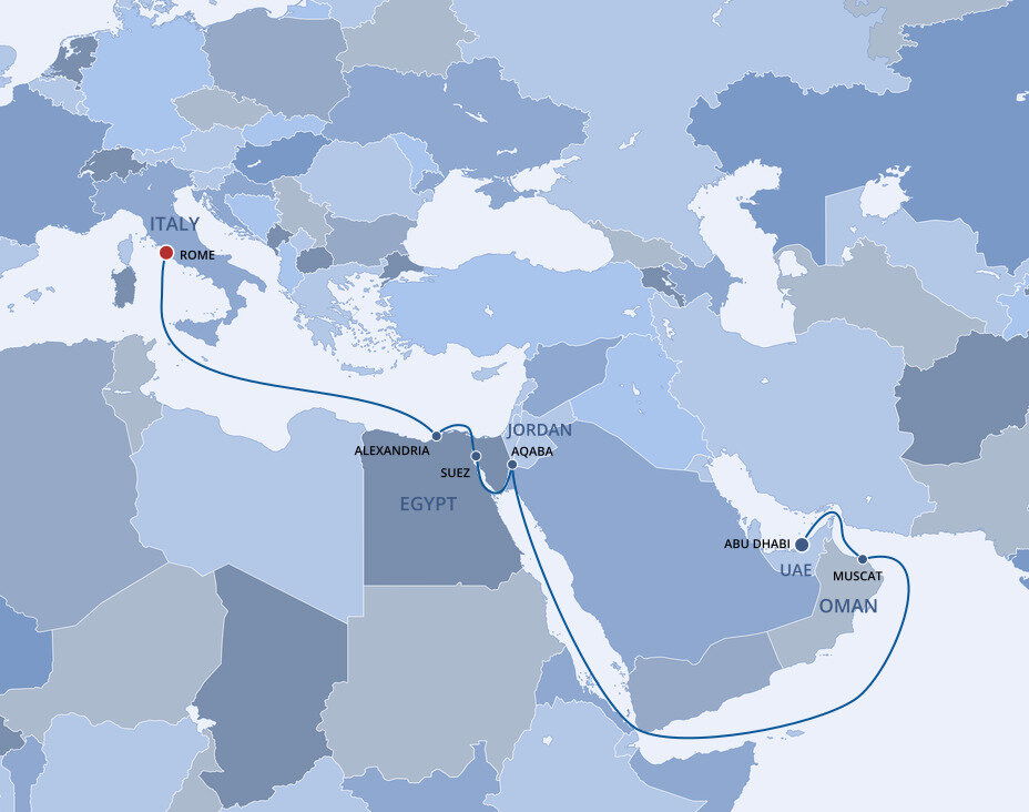 Enjoy the breathtaking illusion of sailing through oceans of desert sand as you cruise the Suez Canal, the engineering marvel that connects the Mediterranean and Red Seas.