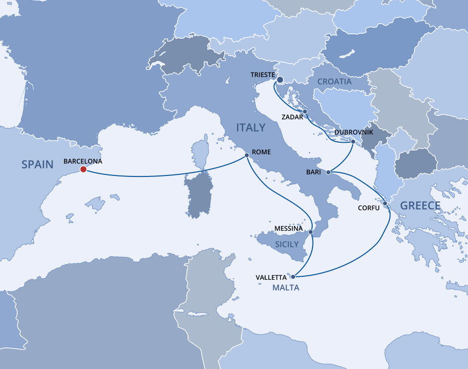 Perched on the Adriatic Sea, the city of Bari has long served as an important port city for both ancient and modern Italy. The city's Old Town beckons visitors to explore with its medieval churches, pedestrian-friendly plazas, and its labyrinth of crooked streets and passageways. Ships will dock at the Port of Bari.