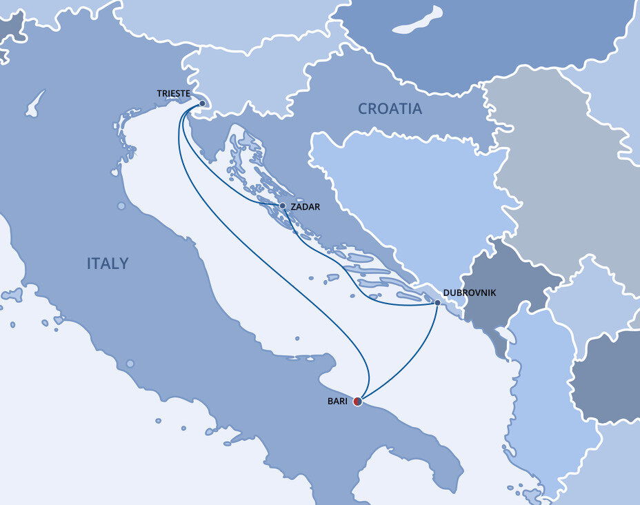 Perched on the Adriatic Sea, the city of Bari has long served as an important port city for both ancient and modern Italy. The city's Old Town beckons visitors to explore with its medieval churches, pedestrian-friendly plazas, and its labyrinth of crooked streets and passageways. Ships will dock at the Port of Bari.