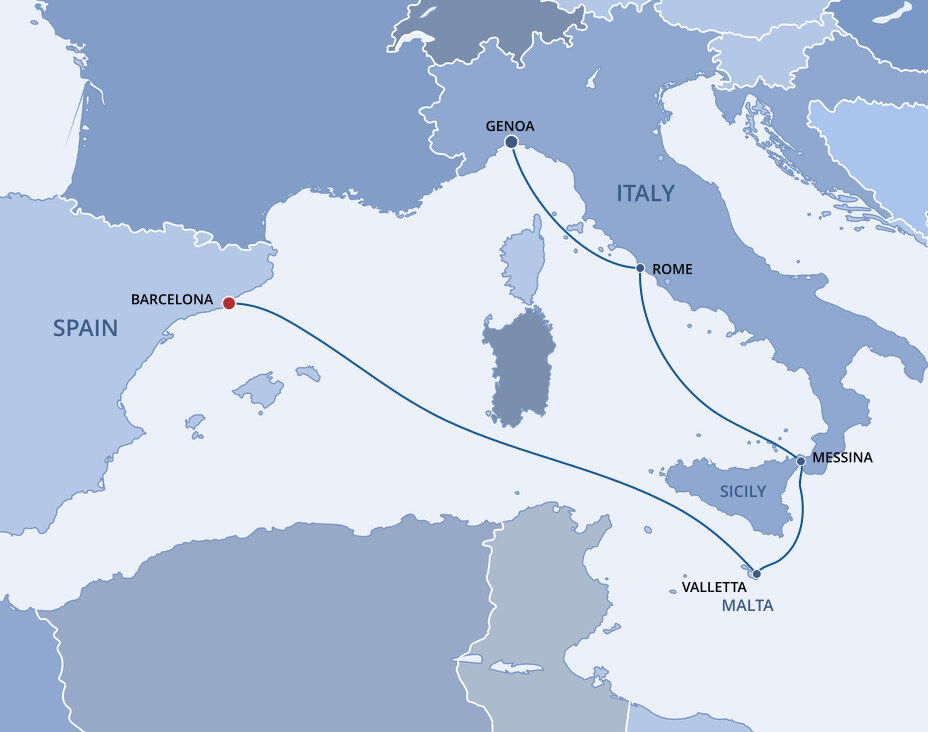 Messina is located on the northeastern corner of Sicily and is the panoramic gateway to the island. Sitting on a sickle-shaped harbour and under the gaze of Mt. Etna, the city is a patchwork of churches and antique palaces. Ships will dock at the cruise terminal.