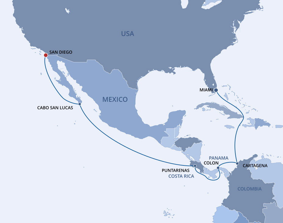 The Port of San Diego is the fourth largest port in California and is is located right in downtown San Diego. Major cruise lines depart from the B Street Pier Terminal which is located a 10-minute drive from San Diego International Airport (SAN) and San Diego Station (Amtrak) and is easily accessible from major freeways. The Embarcadero and nearby areas offer plenty of options for paid parking during your cruise.