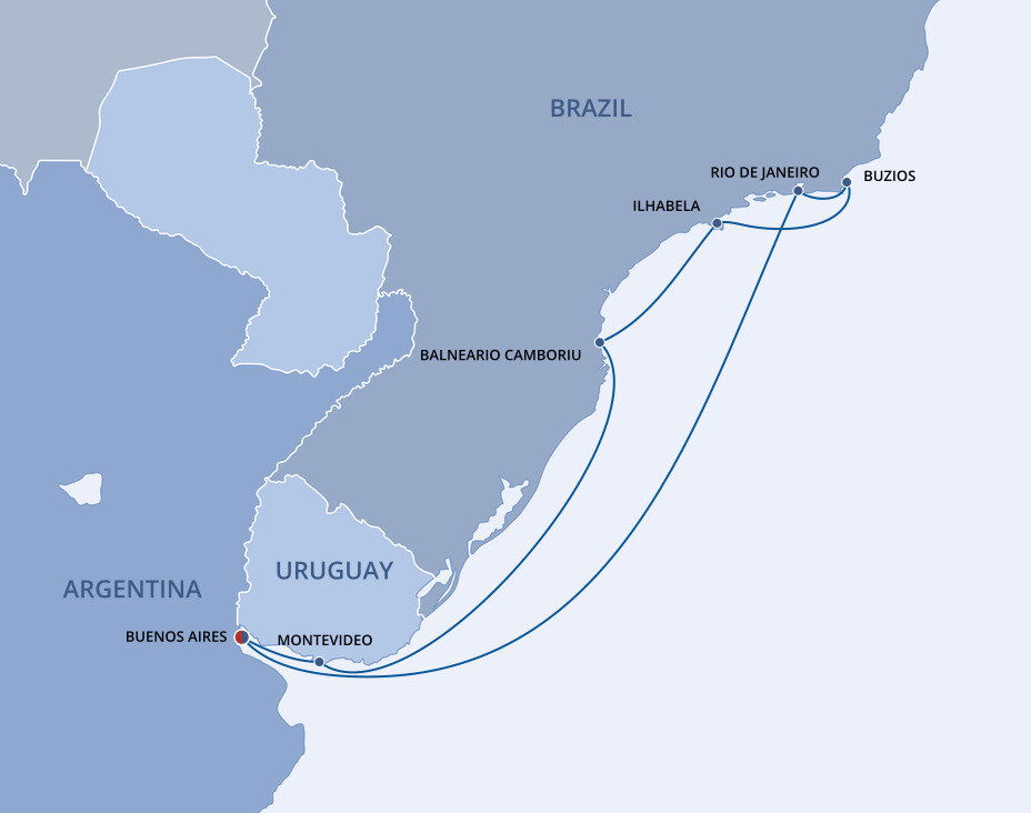 Upscale and desirable, Buzios is a beachy escape to a land of sun and thick palm-clad hills. With 17 luxurious, horseshoe-shaped beaches spreading out nearby, and a lively nightlife and culinary scene, Buzios is a place to kick back and soak up some of the best of Brazil's envied beach life. Ships will anchor offshore and tender guests to shore.
