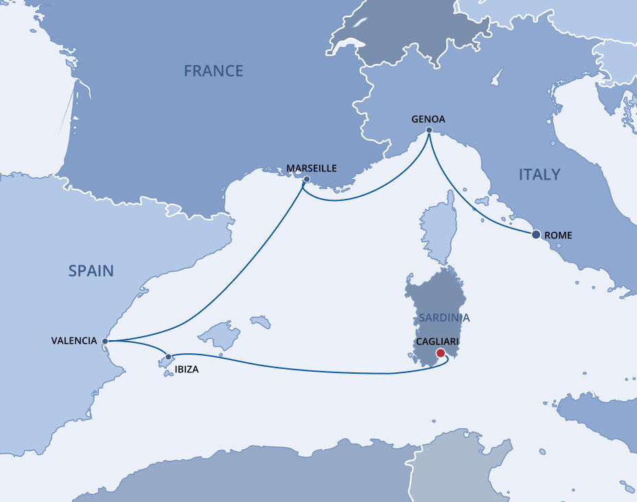 Cagliari, the capital of the island of Sardinia, is situated high upon hills that offer a panoramic view of the Golfo degli Angeli, the Gulf of Angels. Combining Byzantine churches with crumbling Roman ruins and Pisan towers, it’s an elegant, beguiling place to explore. Ships will dock at the Cagliari cruise port in Porto Cervo.