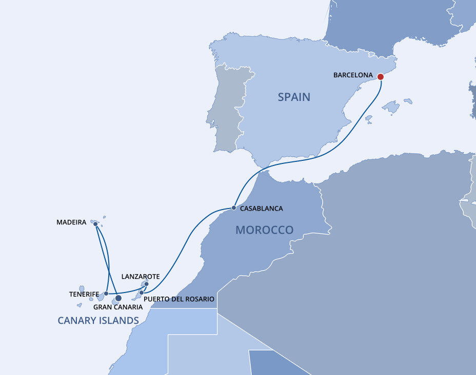 Your cruise finishes today in Barcelona, a captivating city on Spain's northeastern coast. If you're extending your stay in the city, start with a visit to La Sagrada Família, Antoni Gaudí's masterpiece, then wander through the narrow, historic streets of the Gothic Quarter.