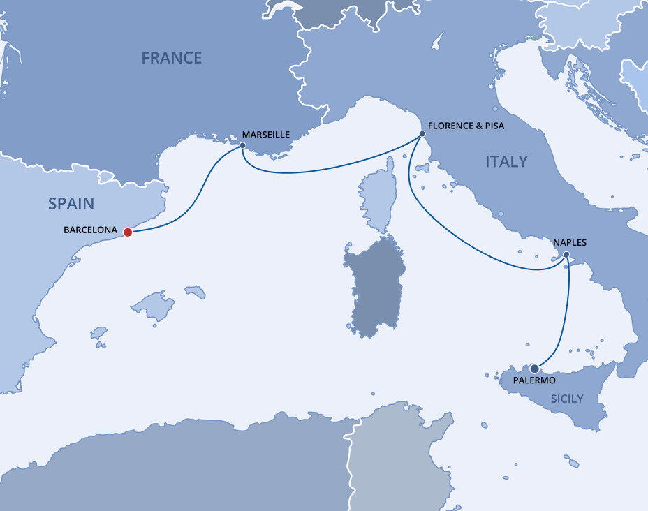 Your cruise finishes today in Barcelona, a captivating city on Spain's northeastern coast. If you're extending your stay in the city, start with a visit to La Sagrada Família, Antoni Gaudí's masterpiece, then wander through the narrow, historic streets of the Gothic Quarter.