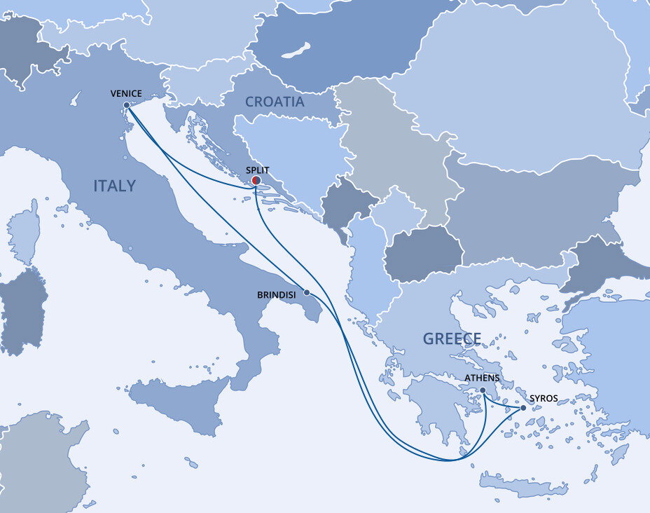 Lying on the Adriatic Sea's eastern shore, Split is known for its terracotta roofs, whitewashed buildings, palm-tree-lined promenade and azure waters. A city of romantic beauty, it was built around the historic Diocletian’s Palace. Ships will dock or anchor at this port.