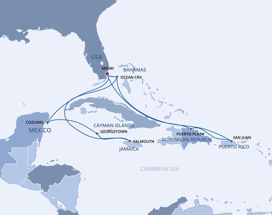 This multicultural city where the sun rules supreme is more than just a cruise port. Visitors from all over the world enjoy Miami’s famous Art Deco buildings, family-friendly zoos and romantic palm tree-lined streets filled with fantastic restaurants. Don’t forget about the white sandy beaches and year-round warm weather, perfect for relaxing before or after your Caribbean cruise from Miami.