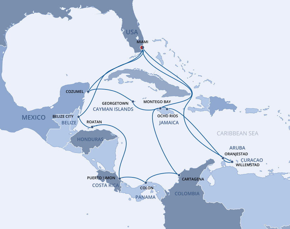 This multicultural city where the sun rules supreme is more than just a cruise port. Visitors from all over the world enjoy Miami’s famous Art Deco buildings, family-friendly zoos and romantic palm tree-lined streets filled with fantastic restaurants. Don’t forget about the white sandy beaches and year-round warm weather, perfect for relaxing before or after your Caribbean cruise from Miami.
