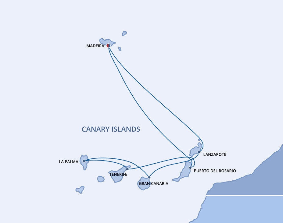 ‘La Isla Bonita,’ La Palma is one of the smaller of the Canary Islands. Its capital, Santa Cruz de la Palma, is a beautiful colonial-style city set on a picturesque harbour. The island’s landscape is one of black sand beaches, mountainous terrain and rich plant life. Ships will dock at the port of Santa Cruz de la Palma.