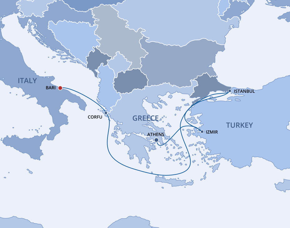 Perched on the Adriatic Sea, the city of Bari has long served as an important port city for both ancient and modern Italy. The city's Old Town beckons visitors to explore with its medieval churches, pedestrian-friendly plazas, and its labyrinth of crooked streets and passageways. Ships will dock at the Port of Bari.