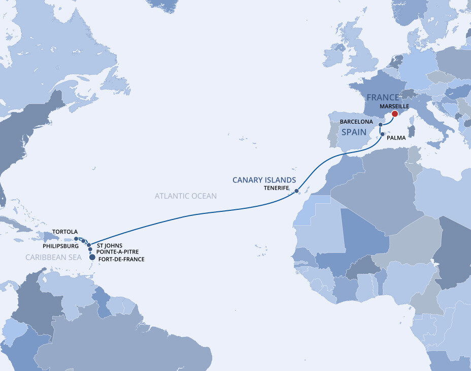 Fort-de-France, located on Martinique is the largest city in the French West Indies and it has personality to match. Life here is vibrant and fast-paced, and the culture is as colourful as the brightly painted shops that line the city’s cobblestone streets. Ships will dock at the port.