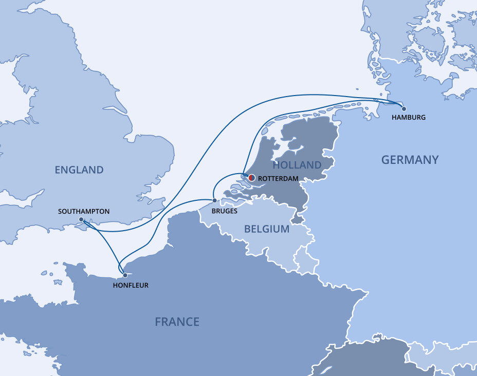 The largest port in Europe, Rotterdam, is an intriguing mix of the old and the new, with bold modern architecture intermixed with classic 18th and 19th century buildings. Destroyed during WWII, the city has since been completely rebuilt to become the Netherlands second largest city.