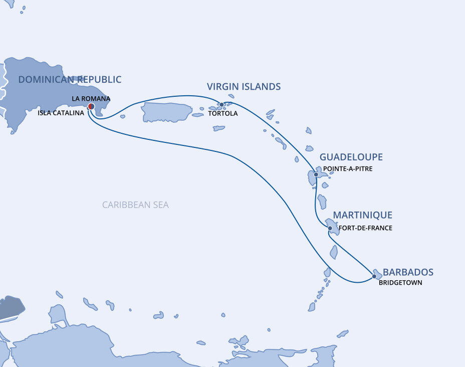 Rolling golf courses unravel along pristine coastline while caves plunge deep into forest-coated mountains and fields of sugar cane wave in the sea breeze. La Romana opens up the Dominican Republic's charms and serves as a jumping-off point for the Cotubanamá National Park. Ships will dock at the cruise terminal.