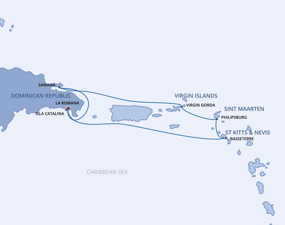 Rolling golf courses unravel along pristine coastline while caves plunge deep into forest-coated mountains and fields of sugar cane wave in the sea breeze. La Romana opens up the Dominican Republic's charms and serves as a jumping-off point for the Cotubanamá National Park. Ships will dock at the cruise terminal.