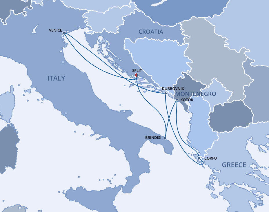 Lying on the Adriatic Sea's eastern shore, Split is known for its terracotta roofs, whitewashed buildings, palm-tree-lined promenade and azure waters. A city of romantic beauty, it was built around the historic Diocletian’s Palace. Ships will dock or anchor at this port.