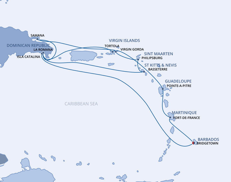 Bridgetown, the captivating capital of Barbados, combines faded colonial history, captivating tradition, and vivid white beaches. Stately colonial buildings intermingle with colourful wooden homes, open-air markets and catch-of-the-day cafés. Ships will dock at this port.
