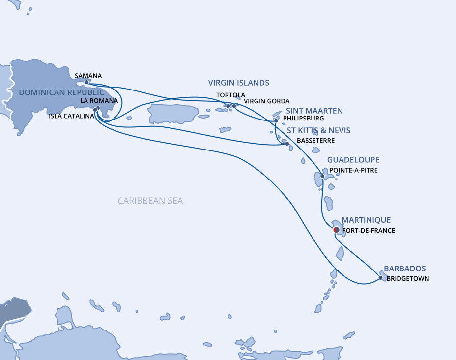Fort-de-France, located on Martinique is the largest city in the French West Indies and it has personality to match. Life here is vibrant and fast-paced, and the culture is as colourful as the brightly painted shops that line the city’s cobblestone streets. Ships will dock at the port.
