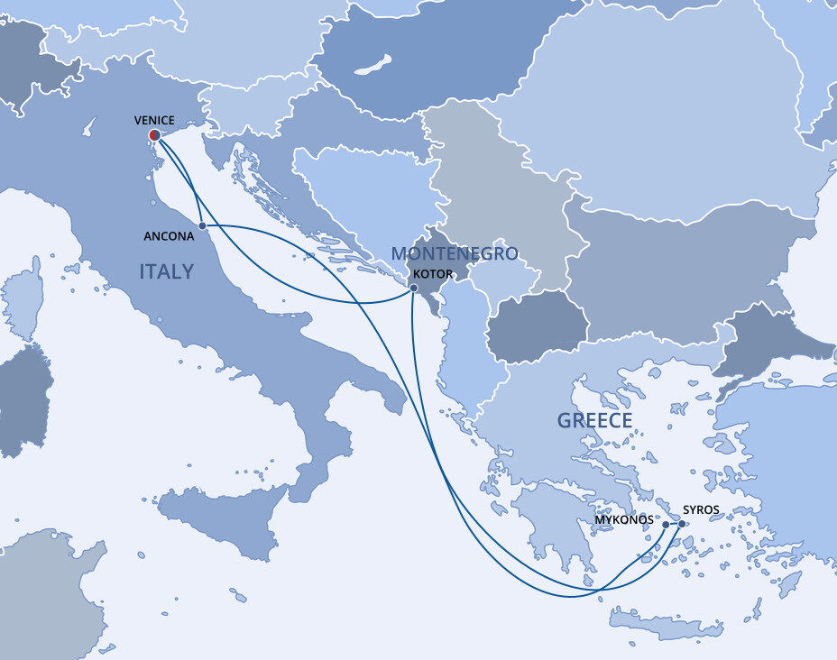 Kotor is a beautiful walled medieval city of twisting, pink-paved streets, markets and architecture reflecting Byzantine to Venetian influences. Nestled between the Adriatic Sea to the west and the limestone-covered mountain range of Mt. Lovćen to the east, this historic city boasts a magnificent natural setting. Ships will dock or anchor offshore at this port.