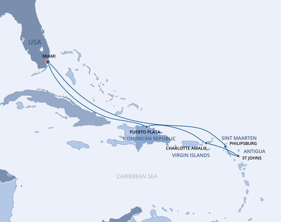 This multicultural city where the sun rules supreme is more than just a cruise port. Visitors from all over the world enjoy Miami’s famous Art Deco buildings, family-friendly zoos and romantic palm tree-lined streets filled with fantastic restaurants. Don’t forget about the white sandy beaches and year-round warm weather, perfect for relaxing before or after your Caribbean cruise from Miami.